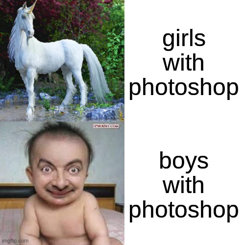 An ironic take using beginner-level Photoshop tools, like excessive use of bevel, emboss, and lens flares, highlighting over-editing tendencies.