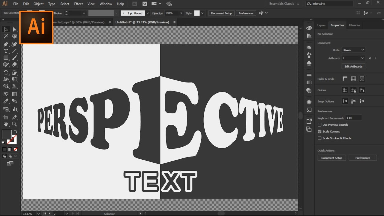 Uses distorted perspectives or warped text to highlight amateur mistakes in understanding spatial relationships.