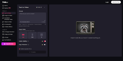 - Customization: Adjust aspect ratios (16:9, 9:16, 1:1), video length (5–60 seconds), and resolution (up to 4K on paid plans).